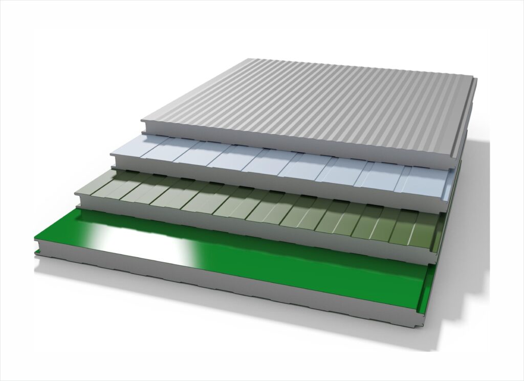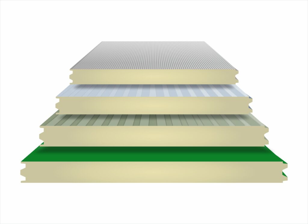 Insulated panels, also known as sandwich panels, are composite building materials typically omposed of two outer layers (skins) and a core material sandwiched in between. The core materials include insulating foam such as Polyurethane (PU), Polyisocyanurate (PIR), or Rockwool, which provide thermal insulation properties, while the outer layers offer structural support and protection.