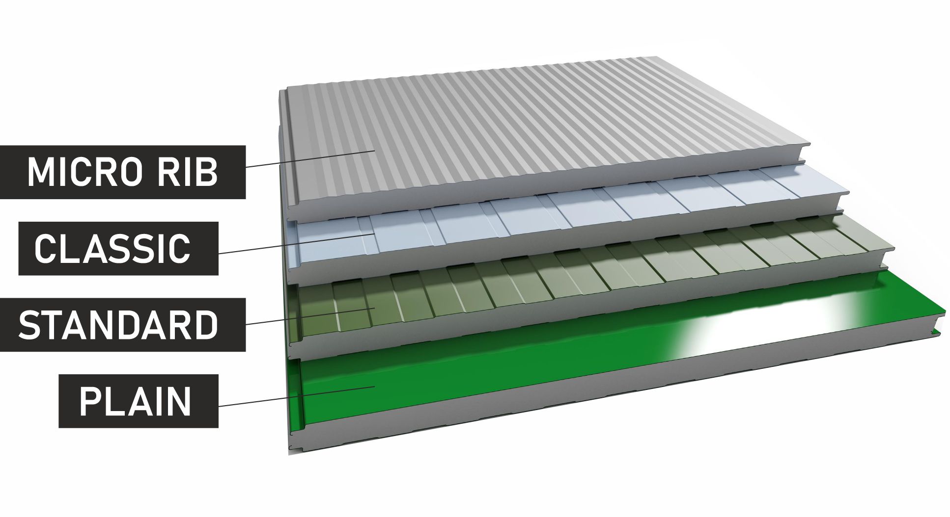 SolarPUFâ„¢ is an insulated roof puf panel with solar panel-compatible profiled steel exterior and ribbed interior liner.